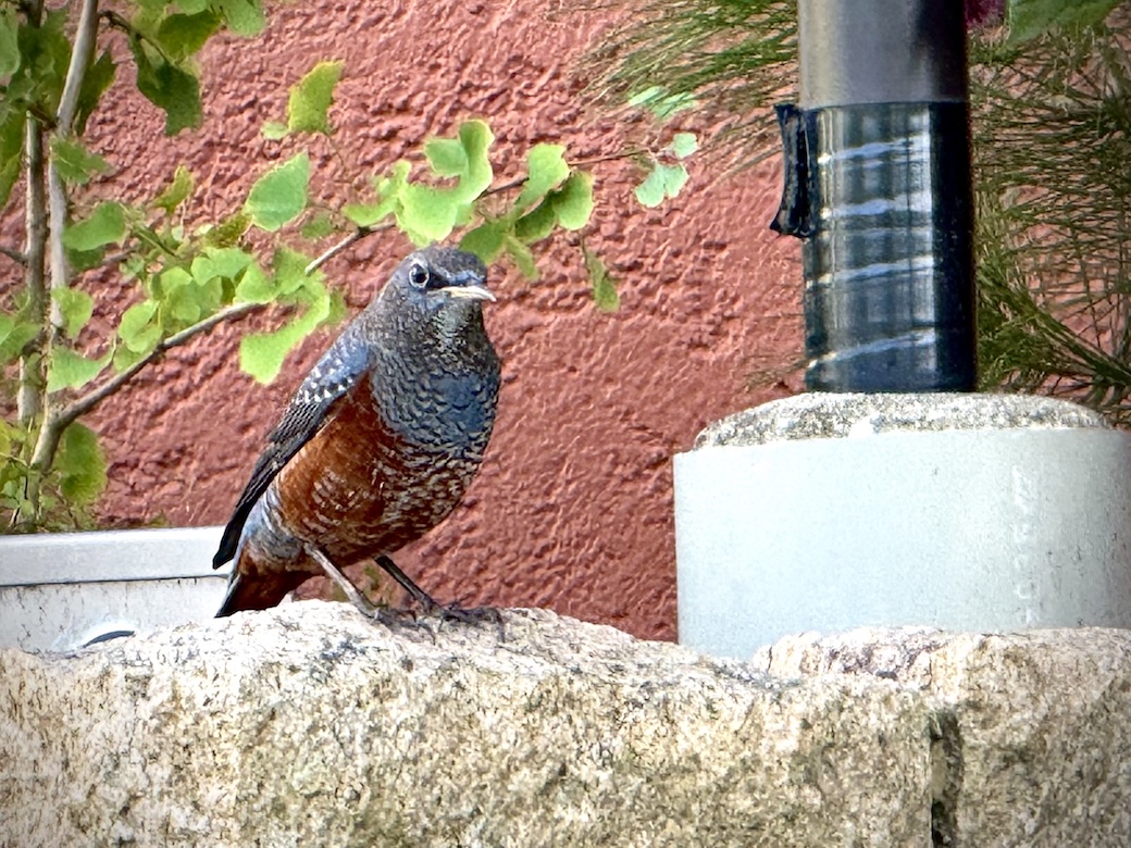 そのウォーキング中にイソヒヨドリを見かけたので、これもiPhoneでパチリ!