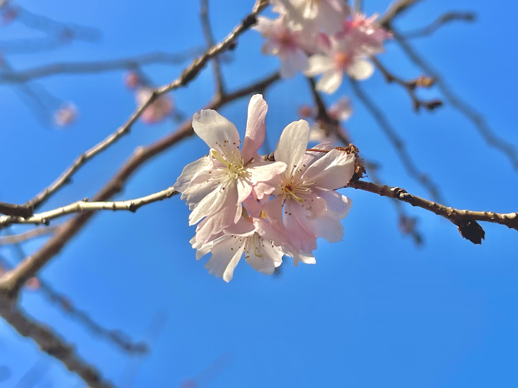 この桜は秋と春、一年に2回咲くそうですが、去年の秋からずっと咲いているような気がします。