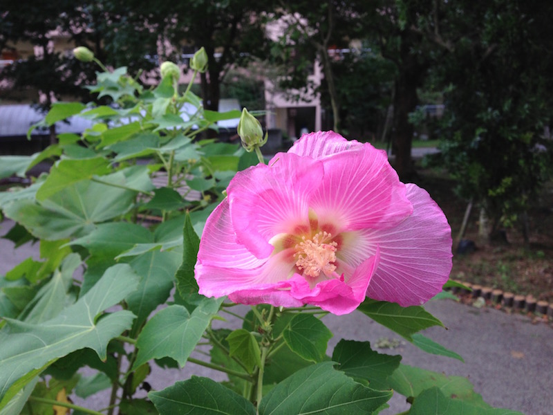 さて、今年も実家の近くで「酔芙蓉」が咲いているのを見つけました。
