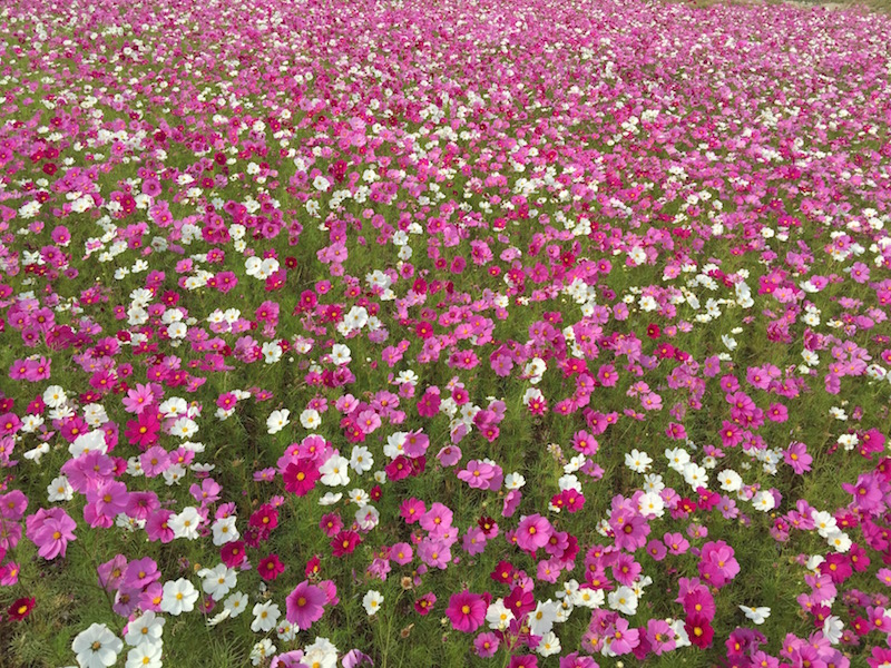 ところで先日、神戸市西区のお客様宅に出張アロマで伺ったのですが、その途中にコスモスの畑?があって、あまりに見事に咲いていたので写真を撮ってみました。