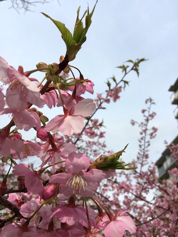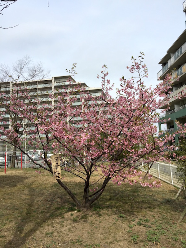 河津桜(かわづざくら)は大島桜と緋寒桜の自然交雑種と見られ、1月下旬から2月にかけて開花する早咲きの桜で、静岡県の河津町というところで原木が発見されたことから名付けられたそうです。
