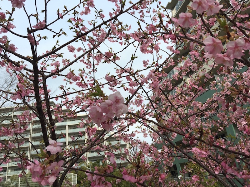 今日、介護中の母との散歩の途中で、集合住宅内の小さな公園に1本の桜が、ほぼ満開と言っていいくらいの綺麗な花を咲かせているのを見ました。