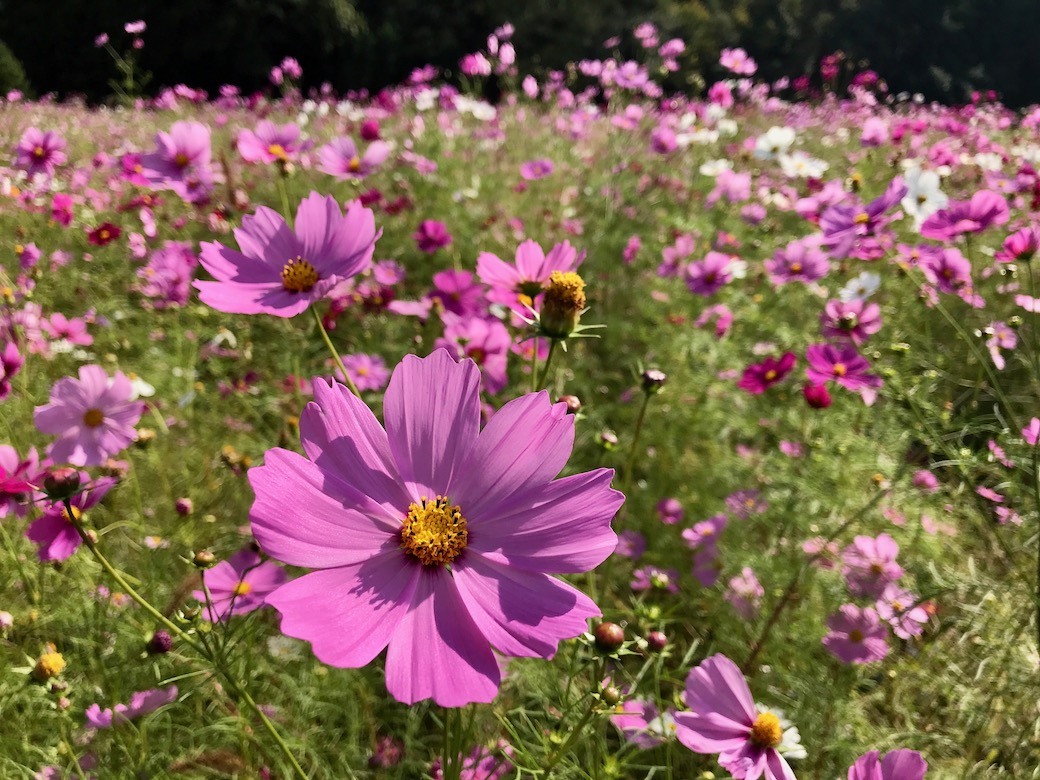 こんな感じで、ずーっと遠くまでコスモスが咲いています。