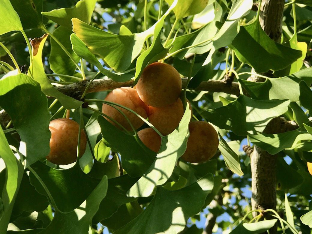コスモス畑の横に大きなイチョウの木があったのですが、大きなギンナンの実がどっさり!こんなの初めて見ました。