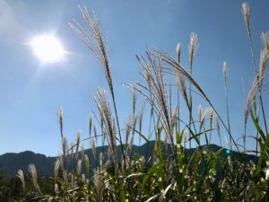 コスモス畑から駐車場に行く道沿いにススキがあったので1枚。