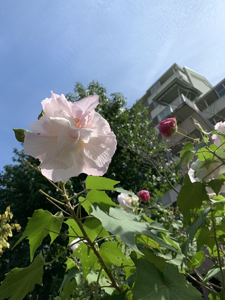 芙蓉にはいろんな種類がありますが、酔芙蓉は特に美しい花で、大好きな花です(^-^)