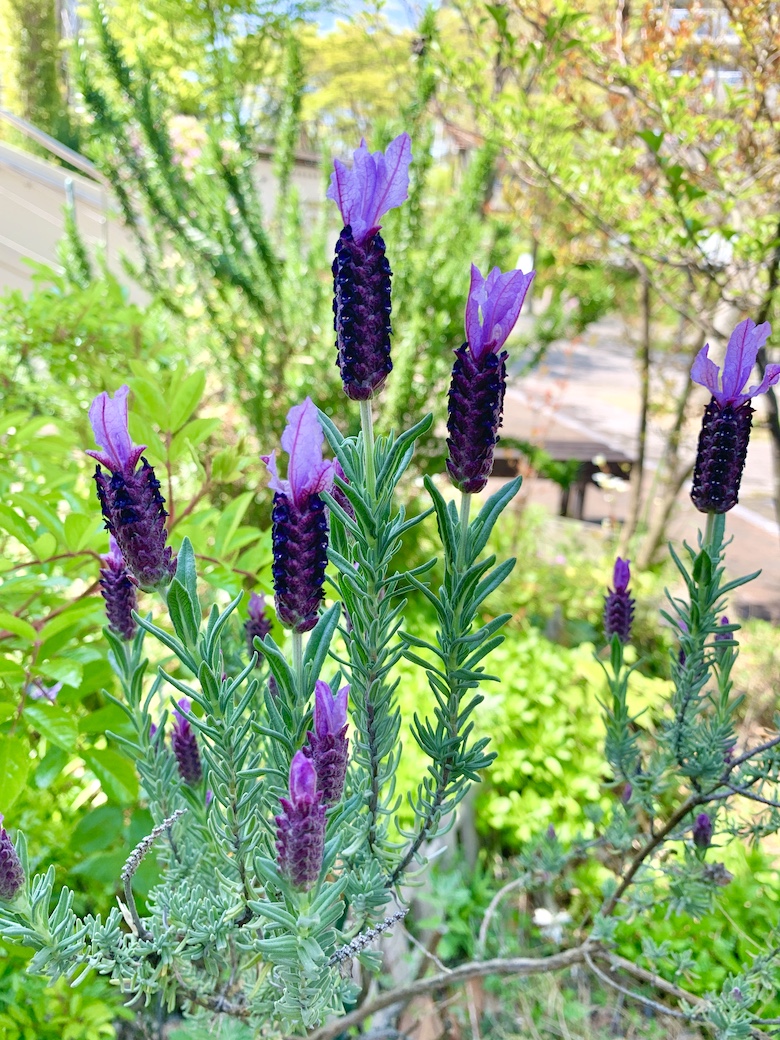 一般的にラベンダーと呼ばれている香りの強いイングリッシュラベンダーに比べると、フレンチラベンダーは香りは弱いですが、栽培のしやすさと、花の見た目の可愛らしさから観賞用として好まれるようですね(^-^)