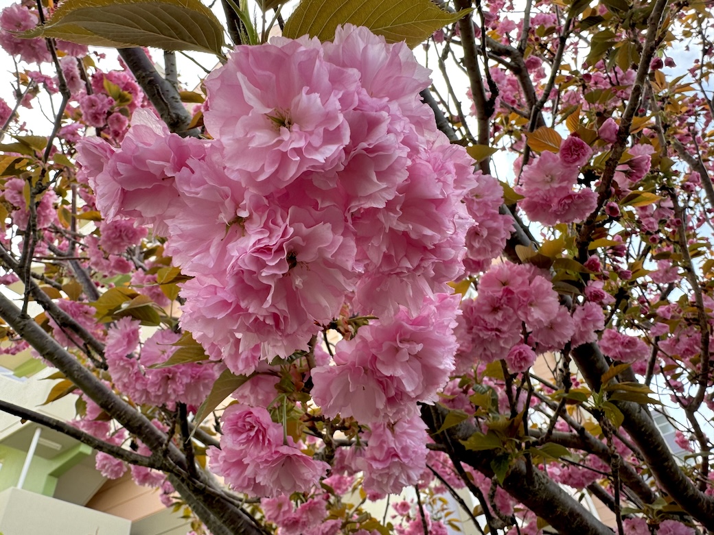 ソメイヨシノがほぼ終わり、牡丹桜(ボタンザクラ)とも呼ばれる八重桜(ヤエザクラ)があちこちできれいな花を咲かせていますね。