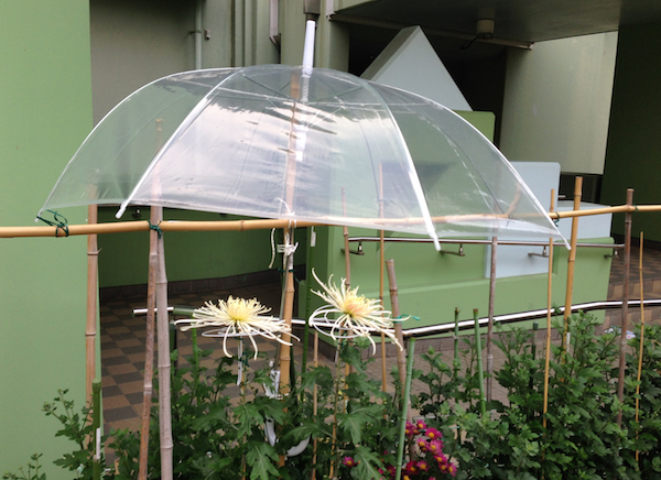 下の写真は実家の近所の菊ですが、傘がかけられています。