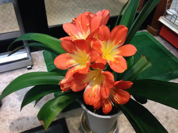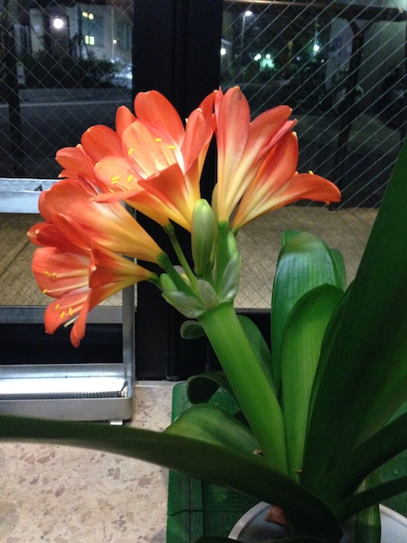みなけんのクンシラン(君子蘭)は茎が相当伸びて、花も満開になりました♪
