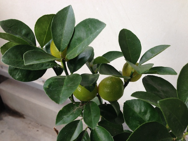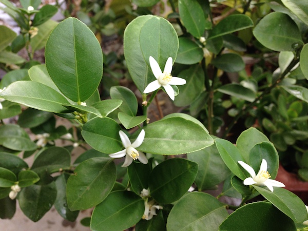 いただいたときには緑の実がなっていて、それが見事に黄色く色づいたのですが、この夏にかわいい白い花が咲きました♪