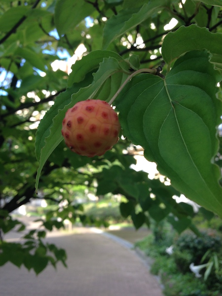 散歩中に変わった実を見つけたので、調べてみたら「ヤマボウシ」の実でした。
